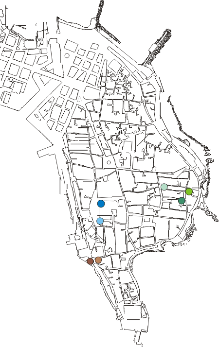 | Segue una planimetria di Ortigia con individuazione dei siti ipogei. |